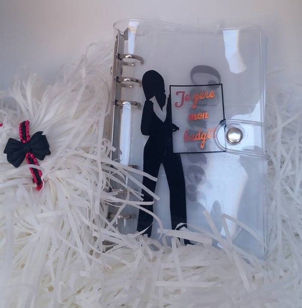 Ce coffret comporte le classeur budget et un bracelet de taille ajustable assortie, de quoi faire sourire la personne à qui on l'offrira !
