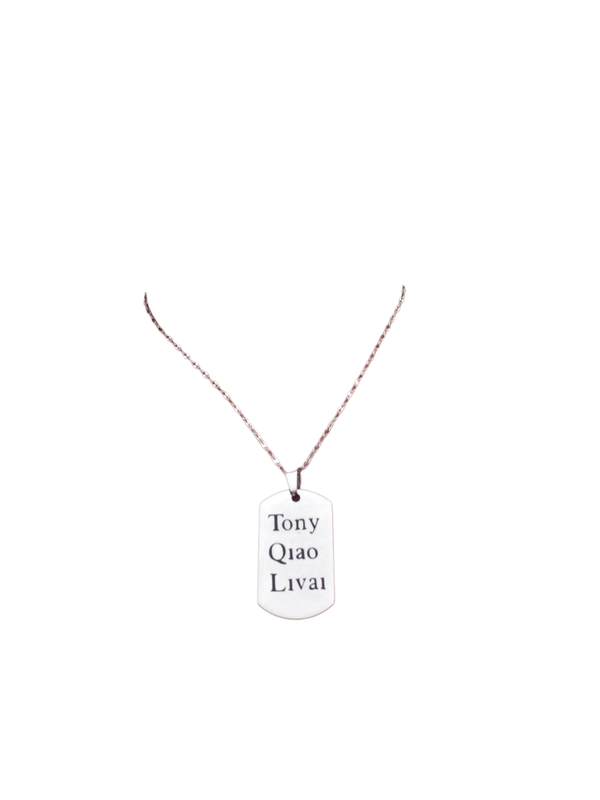 Personnalisez votre collier en acier inoxydable avec le prénoms des gens que vous aimez ou leurs initial.
