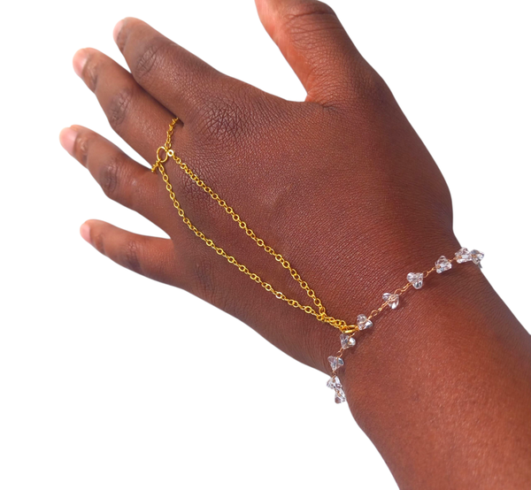 Belle ensemble de bijoux comprenant un collier et une chaîne de main.