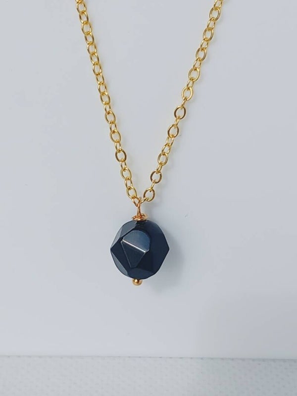 Un jolie collier en acier inoxydable doré accompagné de sa perle à facette en Agathe Noir.
